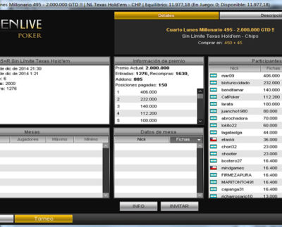 Chile Poker Live este lunes está efectuando su 4to torneo “Lunes Millonario” donde el pozo a repartir es clp$90.00.000 (AR$2.000.000)…