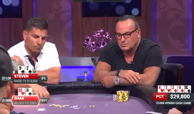 Durante una mesa de High Stakes donde las ciegas son 300/600 y las cajas de 100K USD, cada cierto rato se viven intensos momentos en las que dos grandes manos se enfrentan. En esta jugada entre Shak y Steven, a este último le toca tomar una decisión difícil de si pagar a una resubida o […]