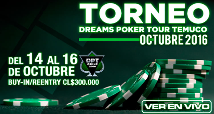 La primera jornada de la 4ta fecha del Dreams Poker Tour 2016 reunió un field de 61 entradas que sumados a los 22 re-entries, conformaron un premio a repartir de $23.274.000. Grandes jugadores del circuito nacional dijeron presente en el Casino Dreams en la Capital de la Araucanía; Amos Ben, Rodrigo Mac-Lean, Nicolás Malandre, Alex […]