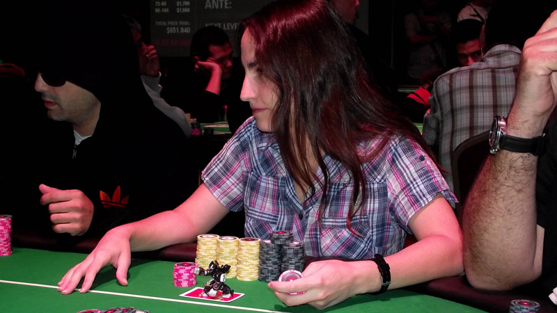 Ver MásMandy dice ALLIN desde BTN con 25.000 fichas, SB call. Mandy muestra :Th::9h: BTN :As::Qc: El board es :Ac::Ts::Jc::9c::2c: Con color runner runner asesinan los dos pares de Mandy quien queda eliminado.