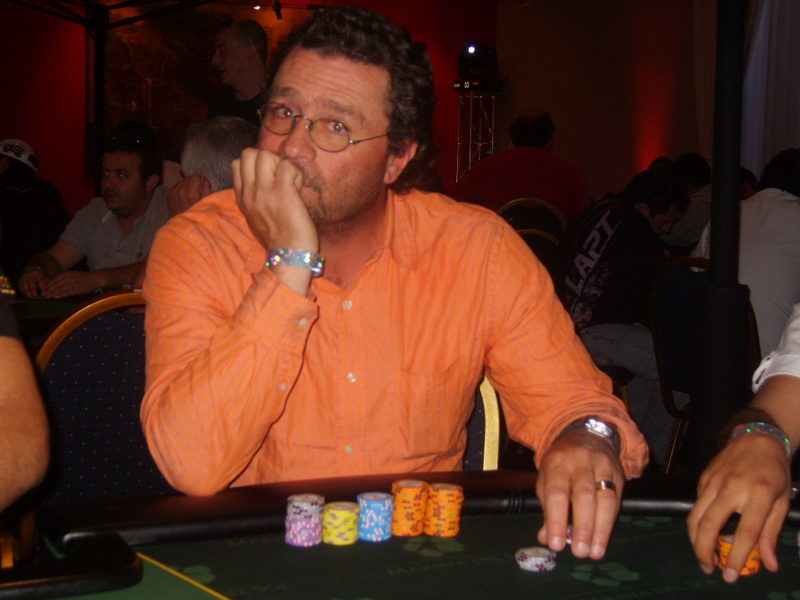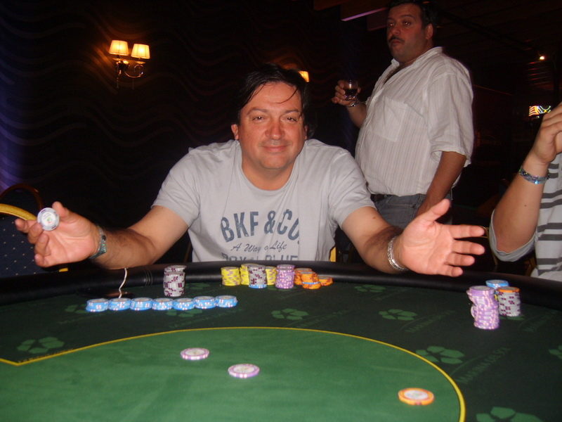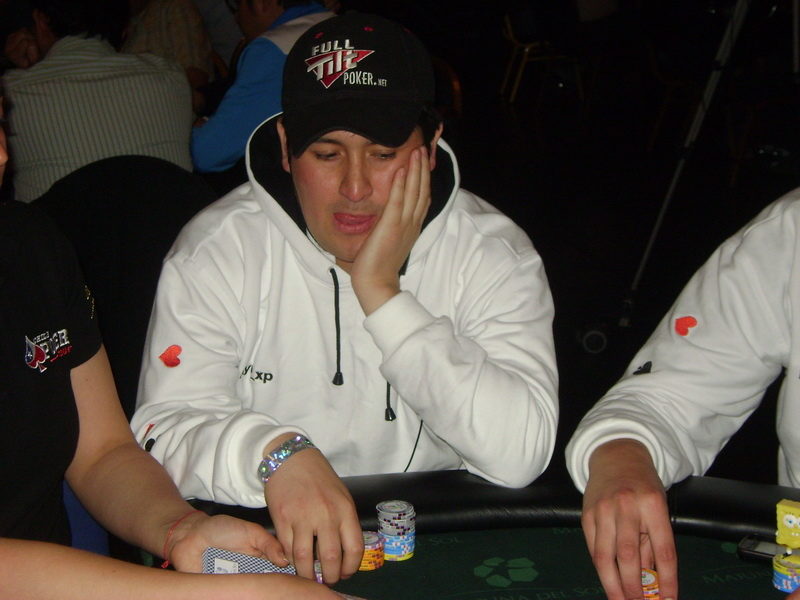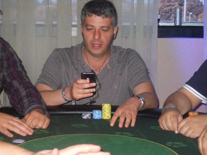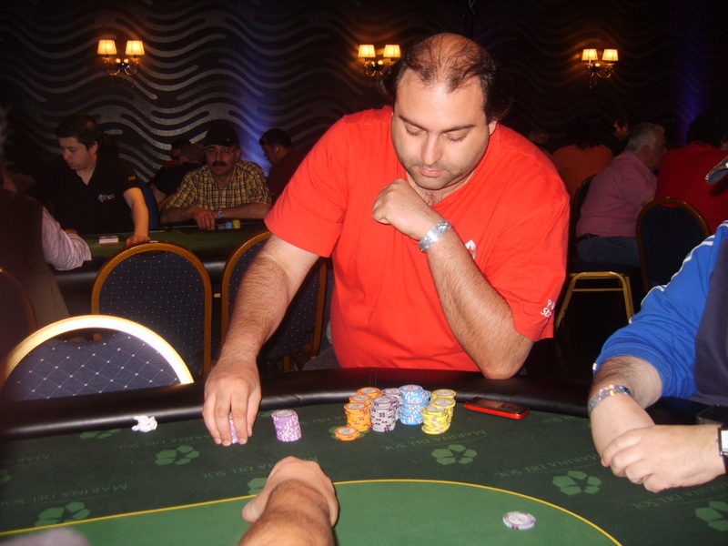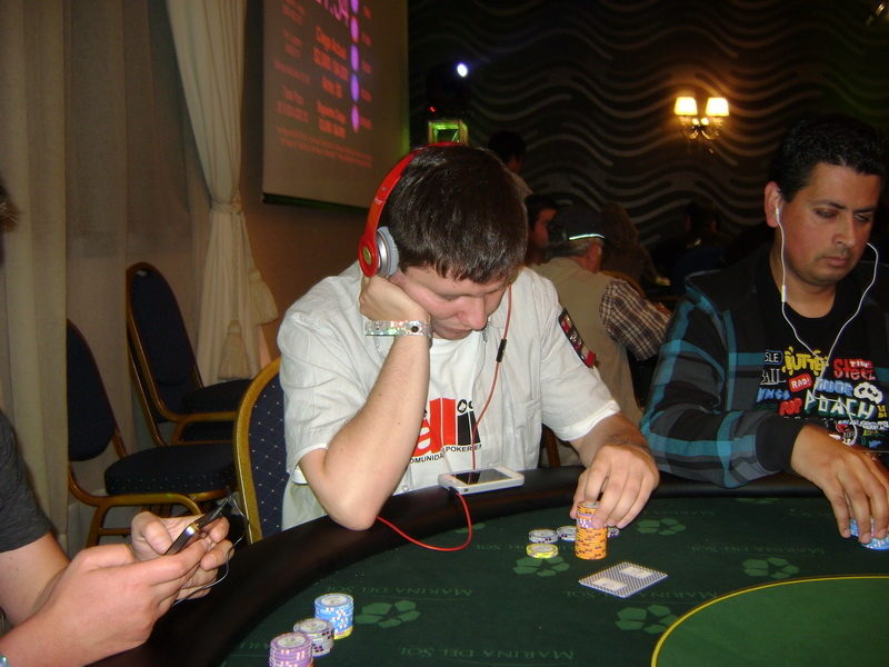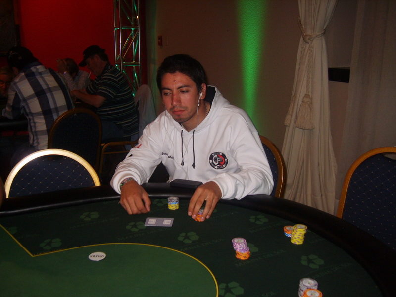 Pedrito Ortíz decide mandar allin por 450K, el que es pagado por Carlos Lama desde SB. Pedro muestra :4c::4d: Lama :Ad::9s: El board aparece :Qc::Qd::7h::9h::Jc: De este modo Carlos Lama suma 450K a su stack y Pedro Ortiz queda eliminado.