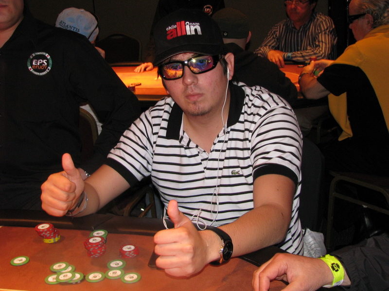 En ciegas 5000/10000 ante 1000. Tomás Carvallo desde UTG sube a 22k y Carlos “Camzu” Zúñiga manda all in por cerca de 86k. Tomás paga. Zúñiga: A 10 Carvallo: A J Las cartas comunitarias no lograron repetir la “gran Camzu” y queda eliminado en el puesto 17.