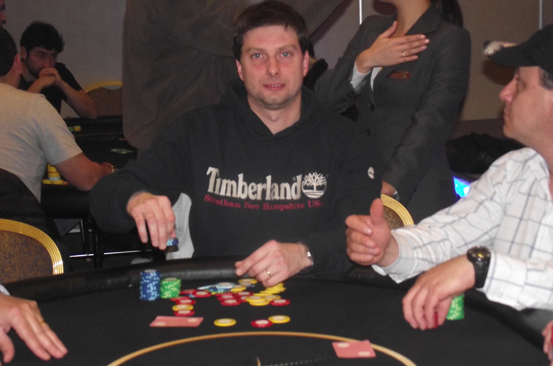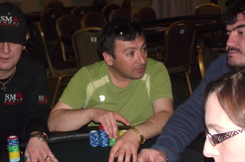 Ver MásLatrach en UTG allin preflop [Th] [Tc] MP call [Kd] [Kc] Board [2h] [6d] [5d] [3d] [Ks] Latrach queda con pocas fichas y es eliminado en una mano seguida