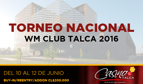 Entérate de toda la acción de Torneo Nacional WM Club Talca 2016 y desde la cobertura realizada por PrensaPoker. A partir de hoy viernes 10 y hasta el Domingo 12…