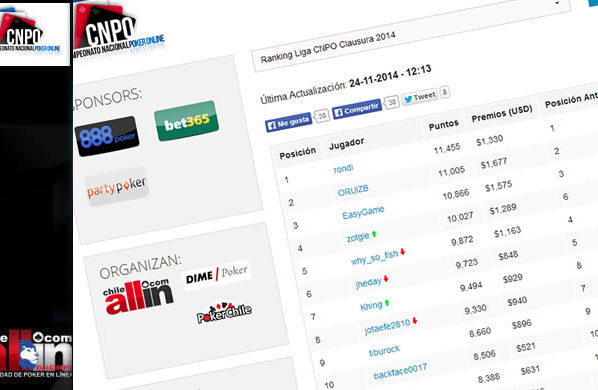 Este domingo 30 de Noviembre se jugará la última etapa del Campeonato Nacional de Poker Online (CNPO), y las salas anfitrionas serán ContinentalBet y 888 Poker . Durante la semana…