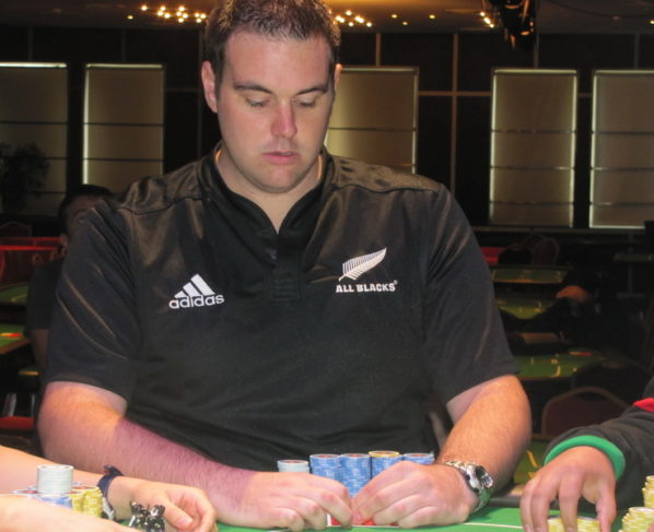 Desde UTG James shovea con 55 y Manteca ve sus cartas, se encuentra con AQ…. paga. El flop es 2A8, turn J y el river es un K dejando a…