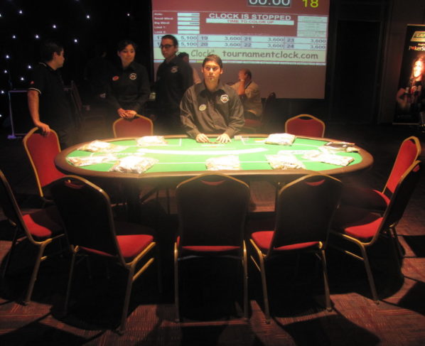 En un allin preflop Jose Neuri empuja todas sus fichas A5 y Federico Usarralde shovea de vuelta y las ciegas fold. Usarralde muestra TT y Neuri espera el flop… Tiran…