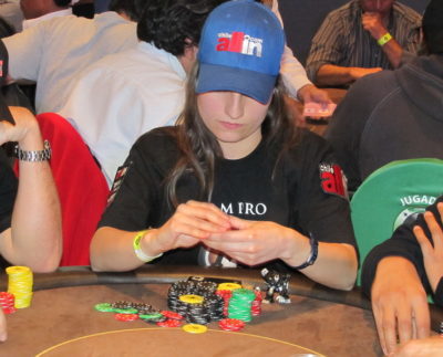 Daniela shovea [Ac][9c] preflop y se encuentra con un call de 88. El flop fue A8K, fatal para Daniela… Turn…